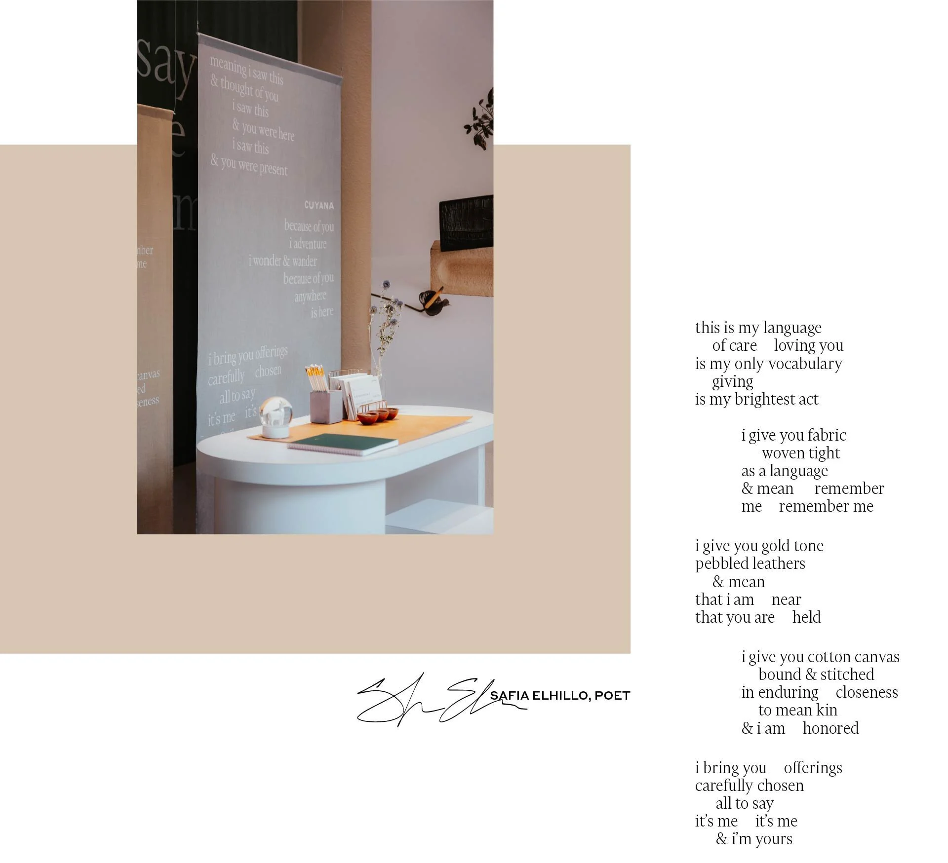 We concepted Cuyana’s first experiential holiday campaign, a one-of-a-kind national store takeover centered around our intentions behind gift-giving and the power of finding the perfect way to express them. We partnered with award-winning poet Safia Elhillo to curate a series of original poems, and launched an immersive installation in every retail location where consumers were invited to write, reflect, and document their intentions – creating powerful in-store moments to drive traffic, and extending into a digital takeover that generated unprecedented UGC and garnered attention from top-tier press, keeping the conversation buzzing long beyond the holiday season.
